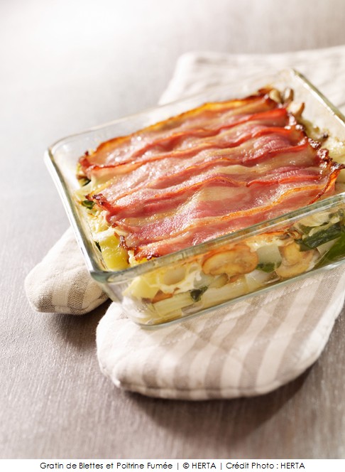 5• Couvrez avec des fines tranches de poitrine fumée HERTA.