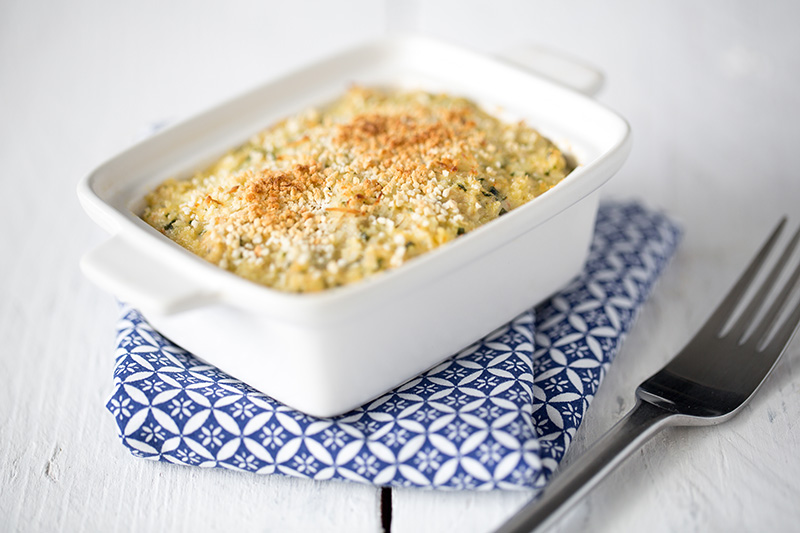 Enfourner sous le gril quelques minutes jusqu'à colorer la surface du plat.