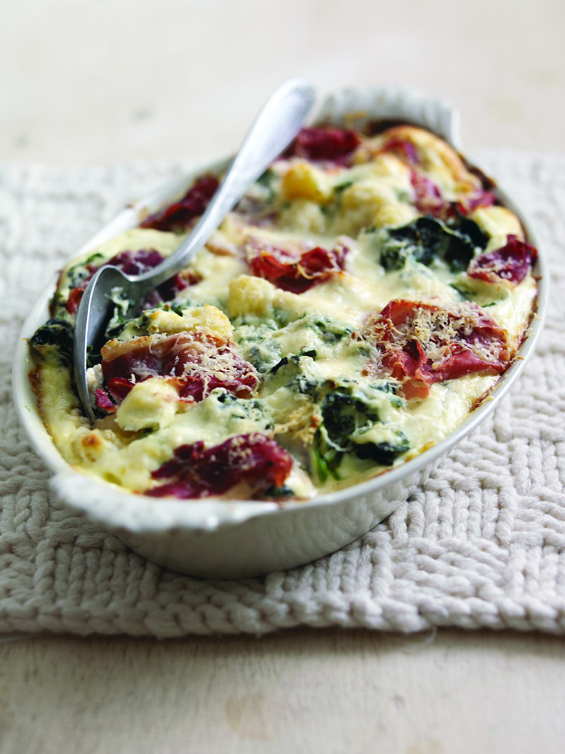 Gratin de gnocchis au Jambon de Parme, épinard et mozzarella