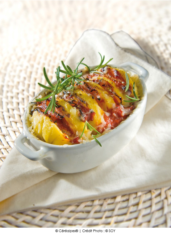 • En gratin, en alternant les tranches de polenta ou de panisse avec des légumes