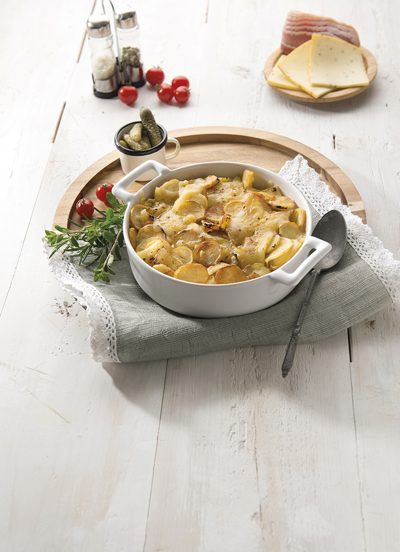 Une petite faim ? Ce gratin de Ratte du Touquet au fromage à raclette se déguste en solo ou en accompagnement, il caresse les papilles avec une infinie douceur.