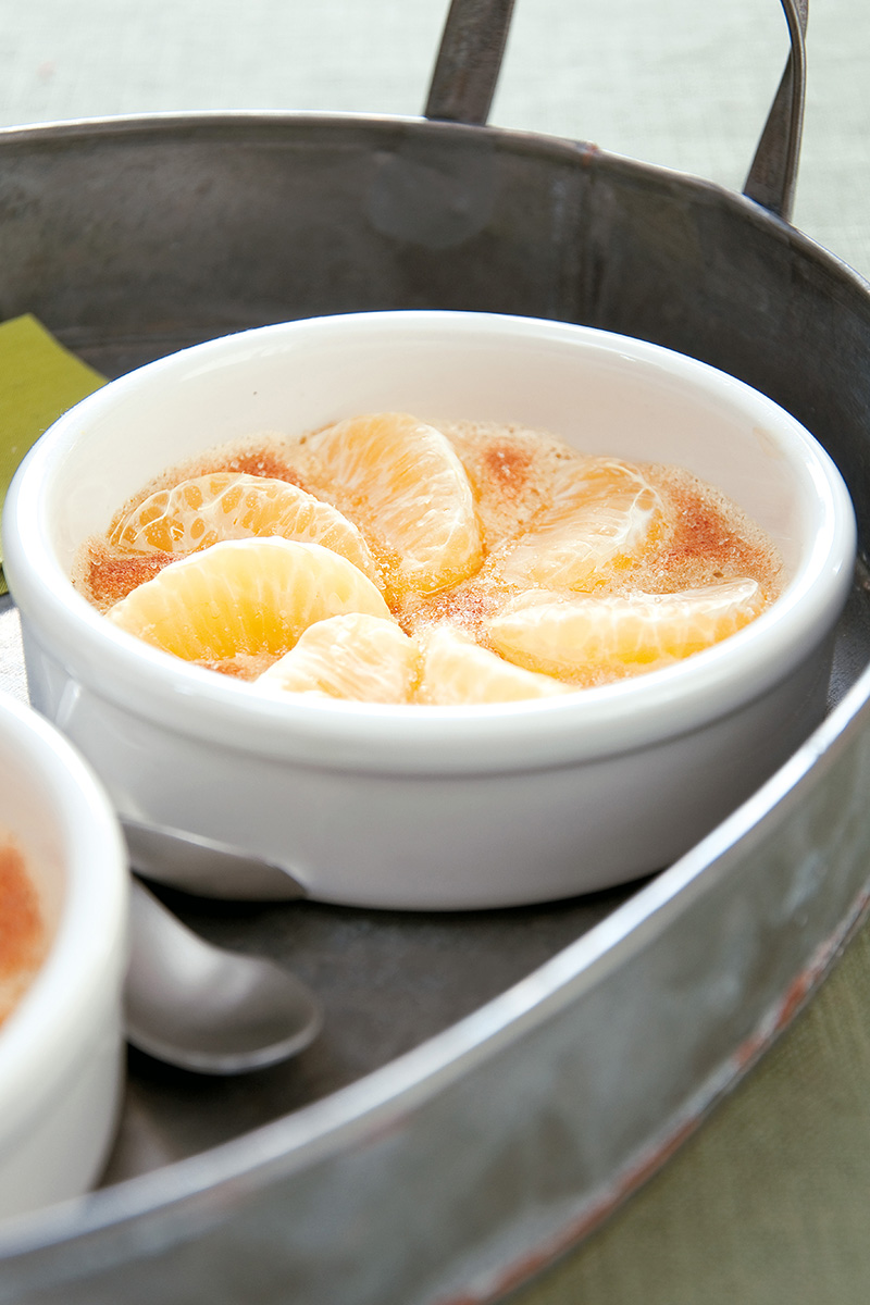 Servir chaud accompagné d'une quenelle de sorbet à l'orange ou au pamplemousse.