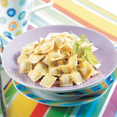 2• Beurrez les mini-cocottes, remplissez-les de ravioles.
