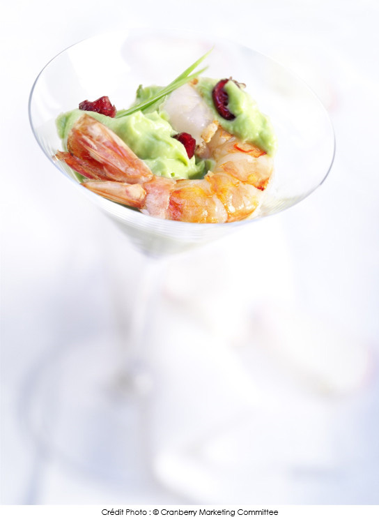 Guacamole avec crevettes géantes sautées