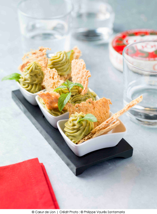 Guacamole mentholé au Cœur de Lion et tuiles craquantes