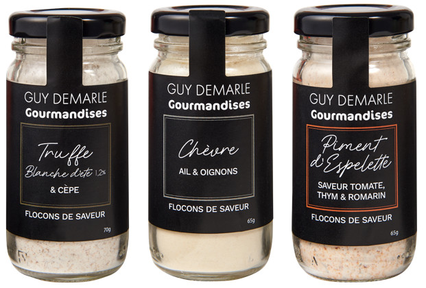Guy Demarle propose une sélection de préparations aromatisantes à saupoudrer sur de nombreux plats : pâtes, risottos, gratins, soupes. L’occasion rêvée de se réinventer et de dépoussiérer certaines de nos recettes traditionnelles ! A base de truffes, de chèvre ou de piment d’Espelette, chacun y trouve son plaisir !