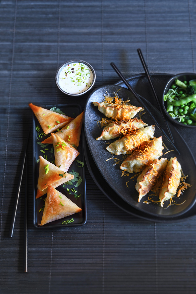 Gyozas au poulet et mimolette – Samoussas au fromage frais et légumes