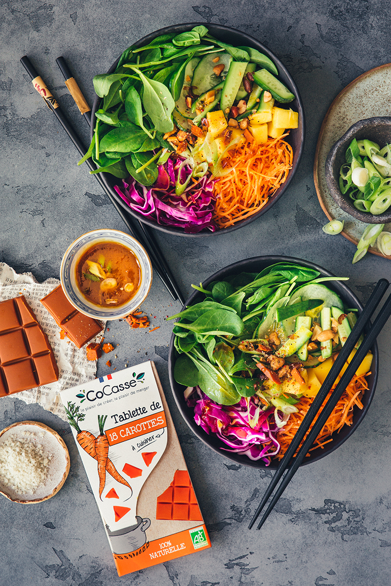 Healthy bowl à la thaï, sauce épicée à la carotte