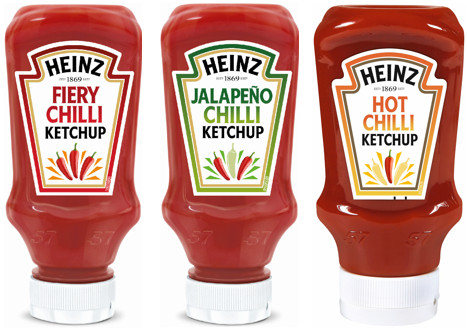 Pour répondre au nombre croissant de fans de piment, Heinz a développé une gamme de Ketchups pimentés : les Chilli Ketchups apportent du piquant sur toutes les tables !