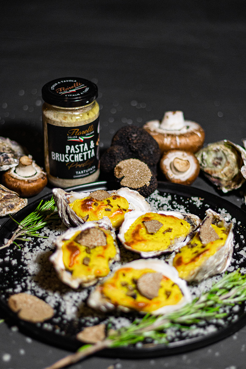 Huîtres gratinées à la Tartufata et au sabayon de Prosecco