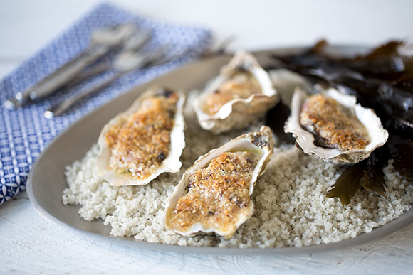 Huîtres gratinées au beurre de grué de cacao
