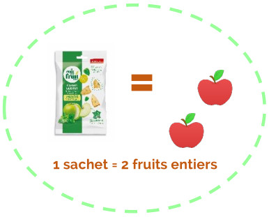 Ingrédients : 100 % pomme, verveine. Riches en fibres. Seulement 94 kcal par sachet
