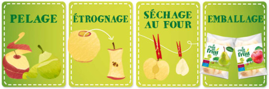 Il était un fruit a développé un procédé de séchage innovant, sans additifs, permettant de préserver une grande partie des qualités nutritionnelles du fruit, tout en offrant une longue conservation.