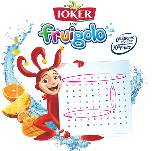 Joker, marque familiale par excellence depuis sa création en 1936, se positionne pour la première fois sur le segment des boissons rafraîchissantes pour enfants avec le lancement d’une gamme spécifique, au nom ludique et évocateur, Joker Fruigolo