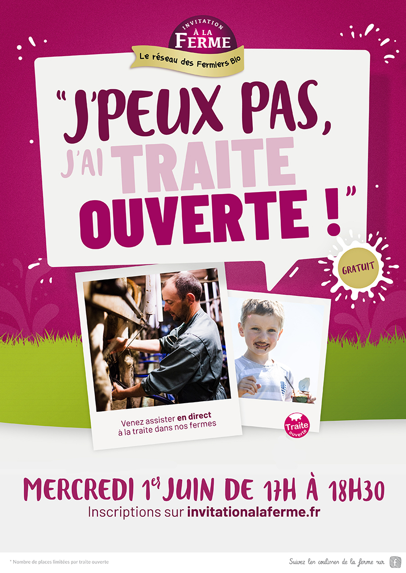 Traite ouverte le mercredi 1er juin de 17h00 à 18h30 dans toutes nos fermes.