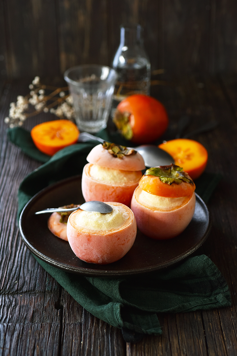 Remplissez les kakis de ce mélange et mettez au congélateur jusqu’au lendemain.