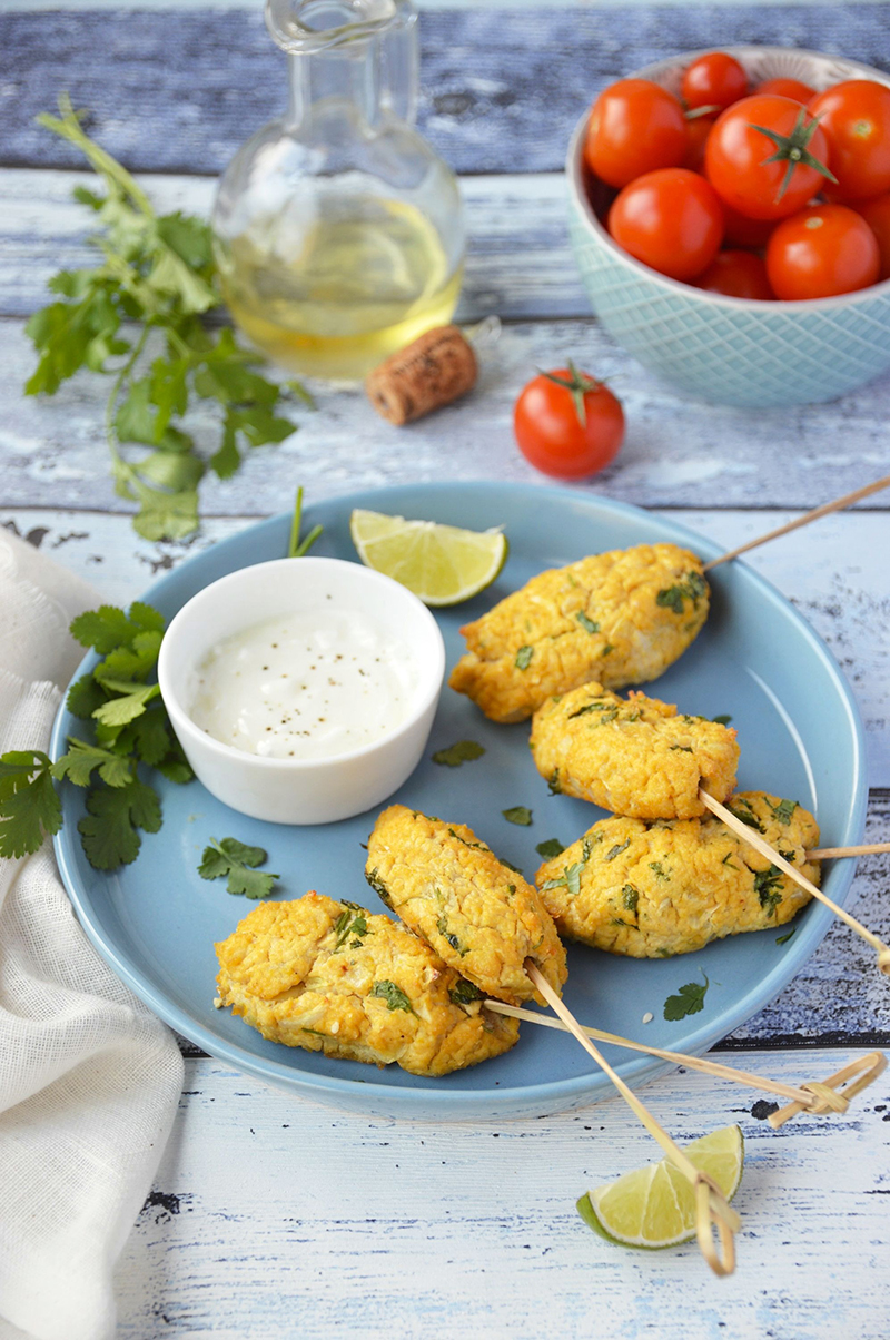 ③• Placer les boulettes sur des piques en bois et les badigeonner d’huile d’olive.