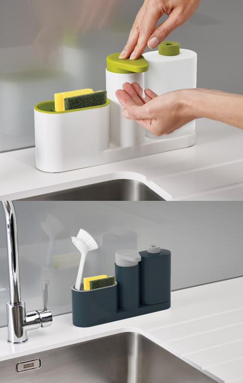 Set de 3 rangements d’évier – Flacon pour liquide vaisselle, pompe à savon et bac de rangement à