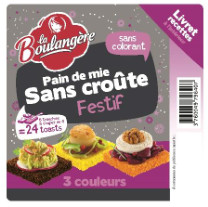 Noël est la période propice pour servir une multitude de toasts originaux à ses invités. La Boulangère revient à cette occasion avec ses pains de mie sans croûte moelleux et colorés pour égayer les apéritifs. Orange, jaune et marron, ces toasts au goût nature sont réalisés à partir de colorants naturels (curcuma, paprika, malte d’orge). Et pour être certain d’étonner vos invités, découvrez un livret d’idées recettes à l’intérieur.