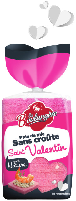 Pour colorer la Saint-Valentin et égayer les repas en amoureux, La Boulangère propose un Pain de mie sans croûte inédit, entièrement rose !