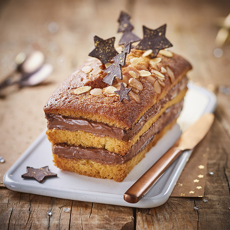Notre astuce : pour une bûche tout chocolat, remplacez le Gourmand Amandes par le Gourmand Chocolat KER CADÉLAC, et réalisez des décors en chocolat blanc.