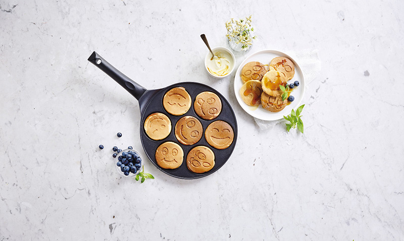 ★ Cerise sur la crêpe, pour réaliser des mini crêpes « Smiley », KITCHEN FUN vous propose sa poêle à pancakes pour amuser et régalez petits et grands.