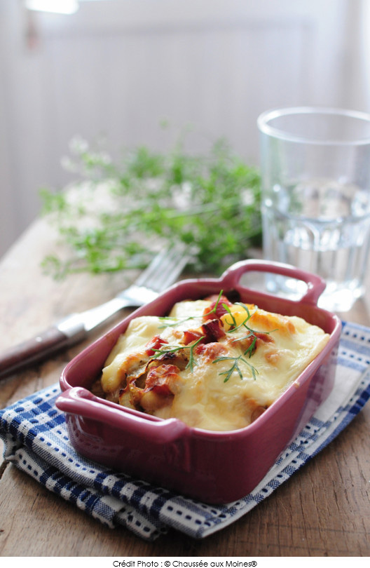 ④• Répartir la préparation dans un plat à gratin unique ou dans 4 plats individuels.