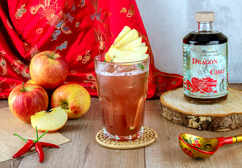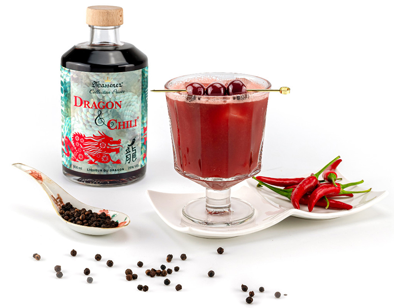 Pierre Boueri, mixologiste de la Distillerie Massenez® depuis les années 2000, a créé et imaginé cinq cocktails : Apple Desire, Chill with Me, Dragon & Tonic, Ginger on Fire et Red Hot Chili Pepper, des cocktails faciles à réaliser pour révéler toutes les subtilités de la nouvelle liqueur Dragon&Chili®.