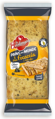 Pour répondre à toutes les envies d’évasion, La Boulangère propose une Focaccia aux olives et aux herbes de Provence, un produit inédit au rayon pain préemballé.