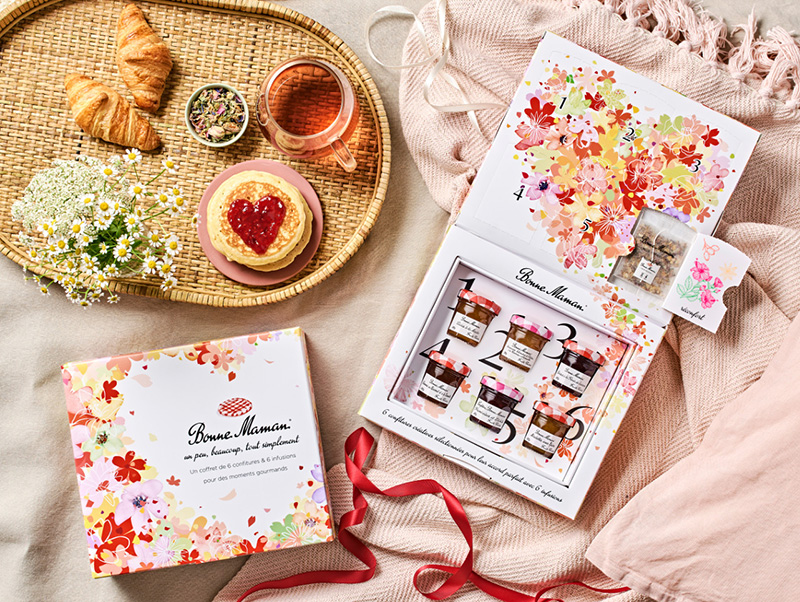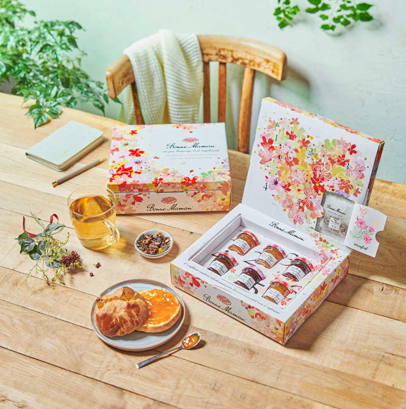 Pour la première fois, Bonne Maman® allie 6 infusions subtiles à ses délicieuses confitures fruitées et créatives dans sa nouvelle édition du coffret fête des mères.