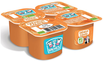 La famille des crèmes desserts bio Les 2 Vaches s’agrandit et est désormais composée de trois produits : le Crémeuh Chocolat, le Crémeuh Vanille et le Crémeuh Caramel.