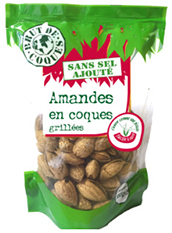 Brut de Coques propose des amandes en coques semi- ouvertes ou avec peau grillées sans sel ajouté pour un grignotage riche en magnésium !