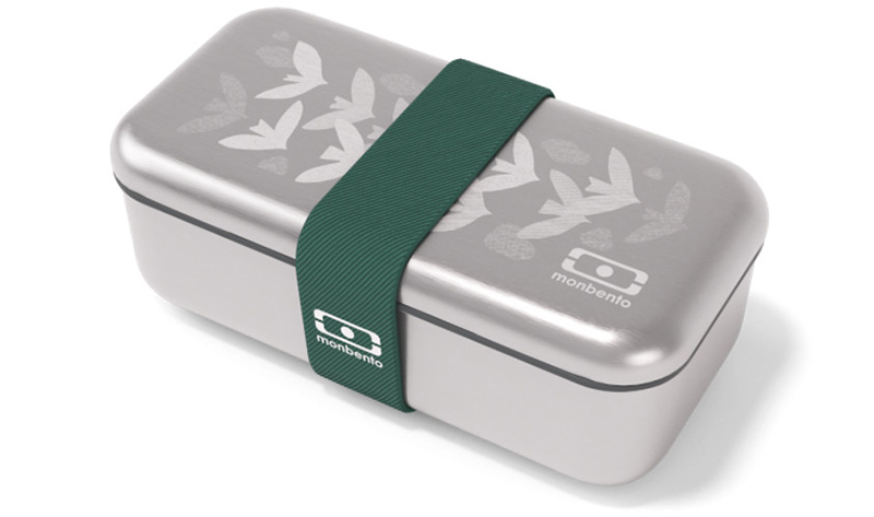Les amateurs d’aventures en pleine nature apprécieront la douce couleur verte qui ceinture cette lunch box, et se laisseront transporter par ses oiseaux pour un déjeuner au grand air !