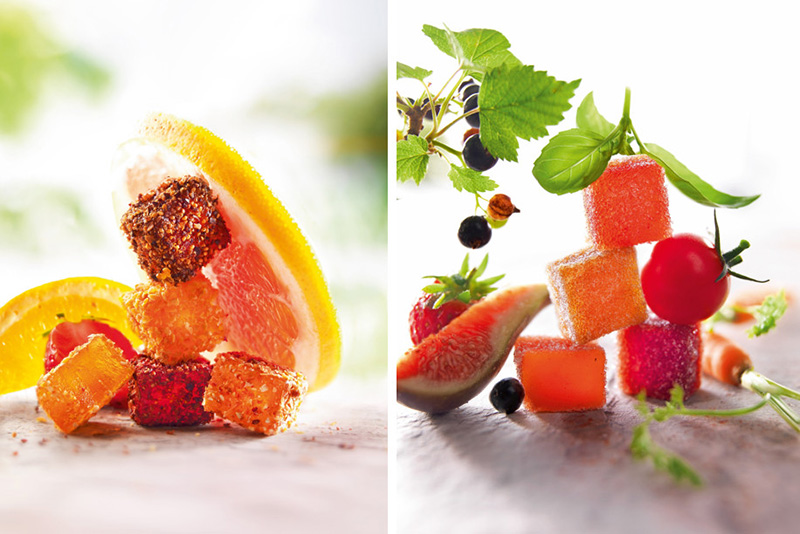 Une combinaison ultra gourmande et légère qui allie la saveur fruitée intense et fondante des pâtes de fruits et le goût pur et délicat des éclats de fruits déshydratés. Belle à croquer, cette collection de pâtes de fruits met savamment en valeur le contraste entre une exceptionnelle robe naturelle, croustillante et aérienne et un coeur moelleux fruité aux belles couleurs chatoyantes… Moins sucrée qu’une pâte de fruits enrobée de sucre pour plus de saveurs et de textures.