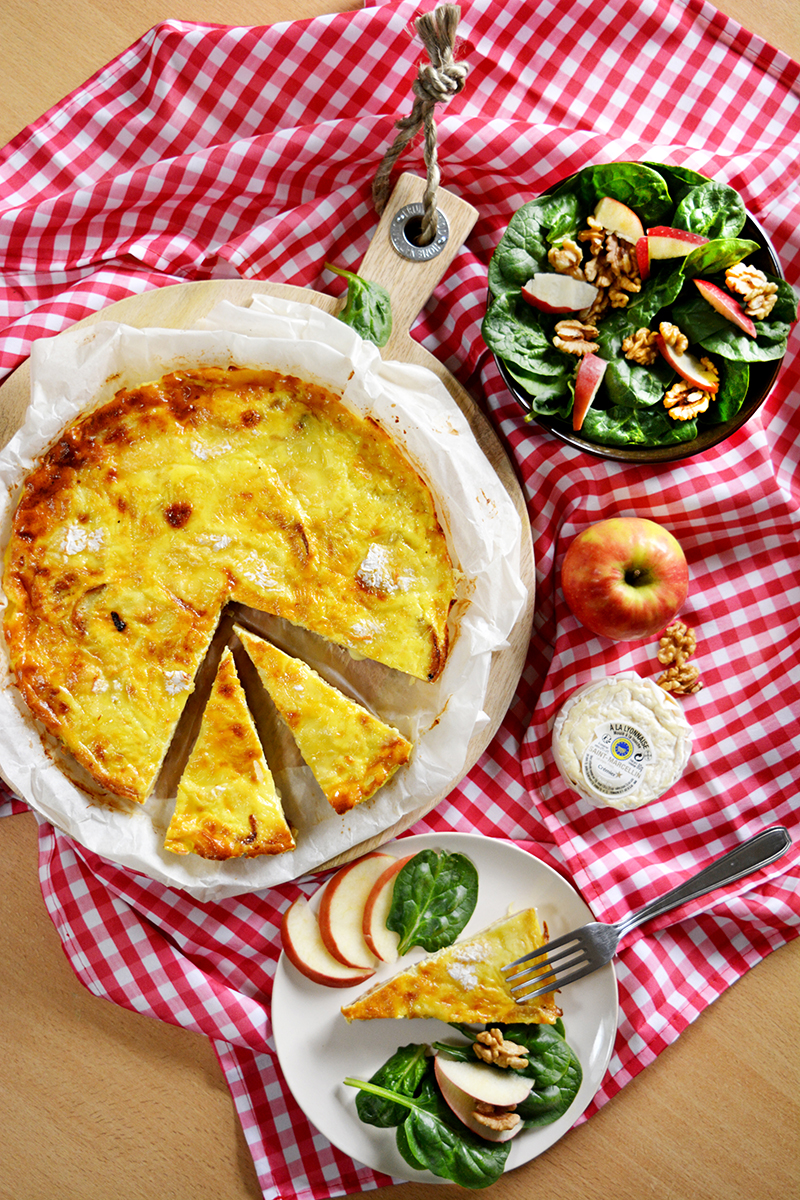 Une délicieuse quiche au Saint-Marcellin sans pâte, facile à réaliser. Le goût du terroir français, grâce aux pommes de terre à la lyonnaise Pom Bistro.