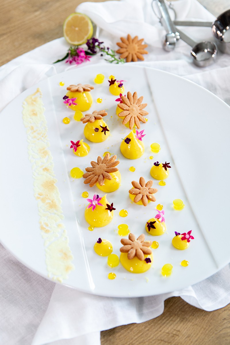 Crème légère, onctueuse, peu sucrée et à l’authentique goût de citron de Menton… La Chef Noémie Honiat a également utilisé la table de cuisson induction Sauter, fabriquée en France, pour poursuivre sa recette.