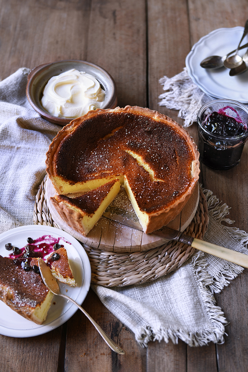 Une tarte moelleuse au fromage blanc qui vous emmènera tout schuss dans un chalet montagnard, pour un moment de partage au coin du feu.