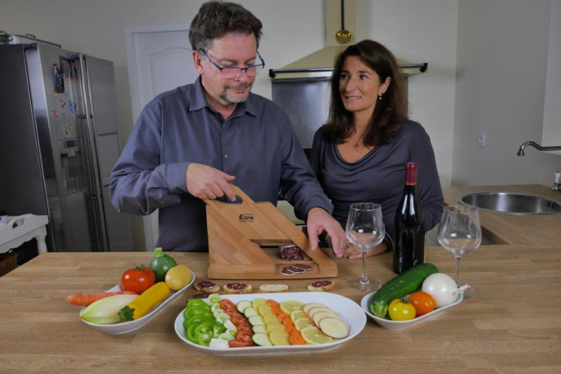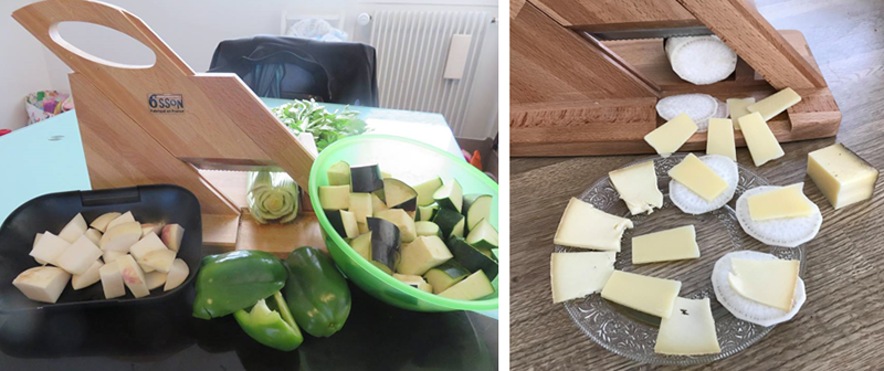 C’est pour remédier à ce problème qu’il a mis au point sa trancheuse multifonctions. Un ustensile de cuisine esthétique, pratique, écologique (en bois, pas d'électricité) et ergonomique.