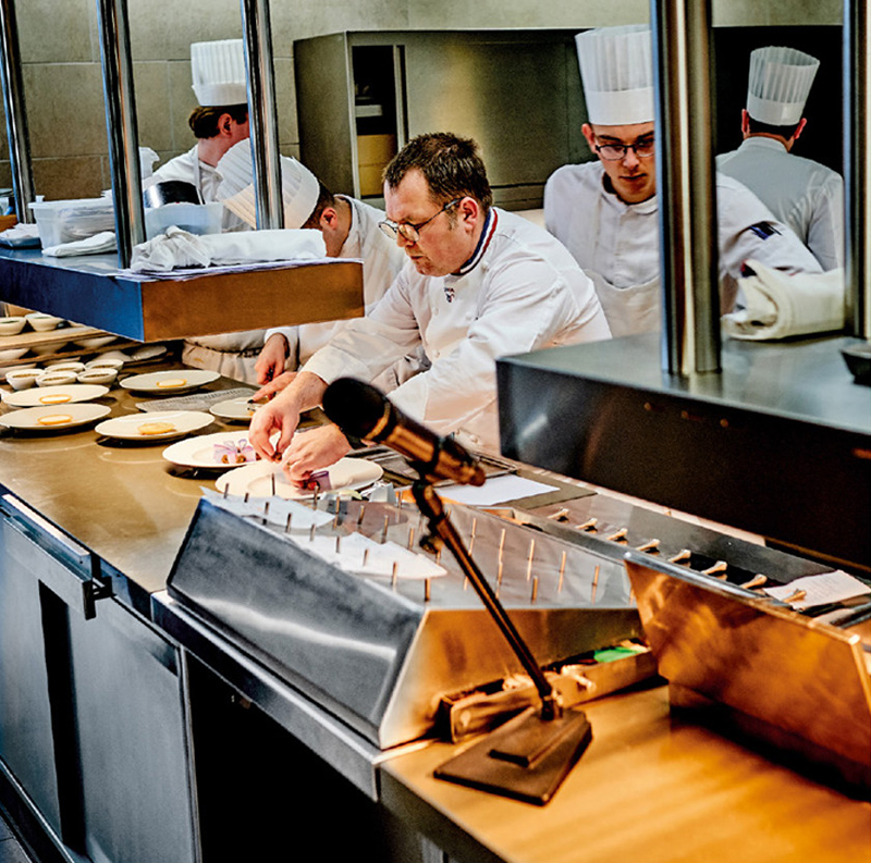 Meilleur Ouvrier de France, Éric Pras est à la tête du restaurant triplement étoilé Maison Lameloise en Bourgogne, où il officie depuis 2008.