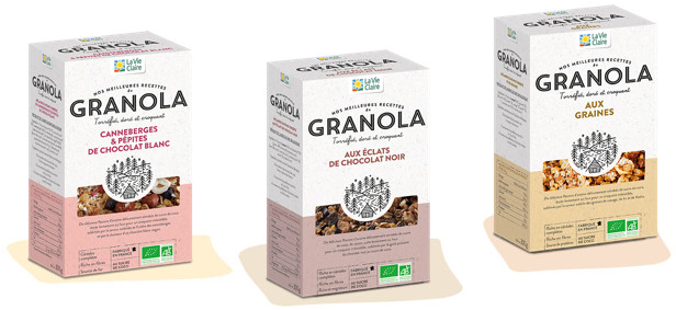 La Vie Claire lance trois nouvelles recettes exclusives de granola bio à base de flocons d’avoine complets : une déclinaison aux canneberges et pépites de chocolat blanc bio et Vegan, une seconde aux éclats de chocolat noir bio sans oublier celle aux graines bio.
