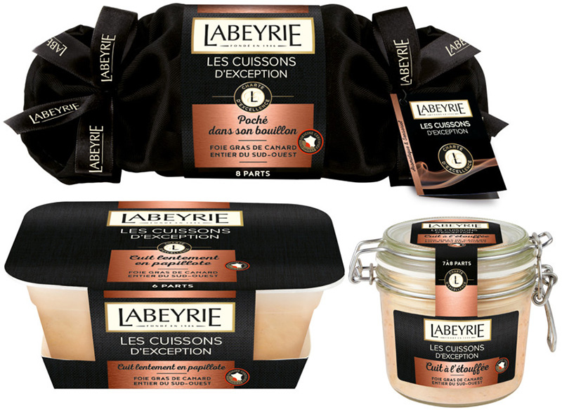 À travers une palette de Cuissons d’Exception associées à des assaisonnements élaborés, LABEYRIE renouvelle les saveurs et textures pour de belles signatures sensorielles. Poché dans son bouillon au Jus de Truffe pour des notes raffinées, cuit en papillote et parfumé aux Épices et Cognac pour des notes aromatiques ou bien cuit à l’étouffée pour des notes rondes et généreuses, chaque Foie Gras de cette collection ravira les papilles et éveillera les sens tout en subtilité…
