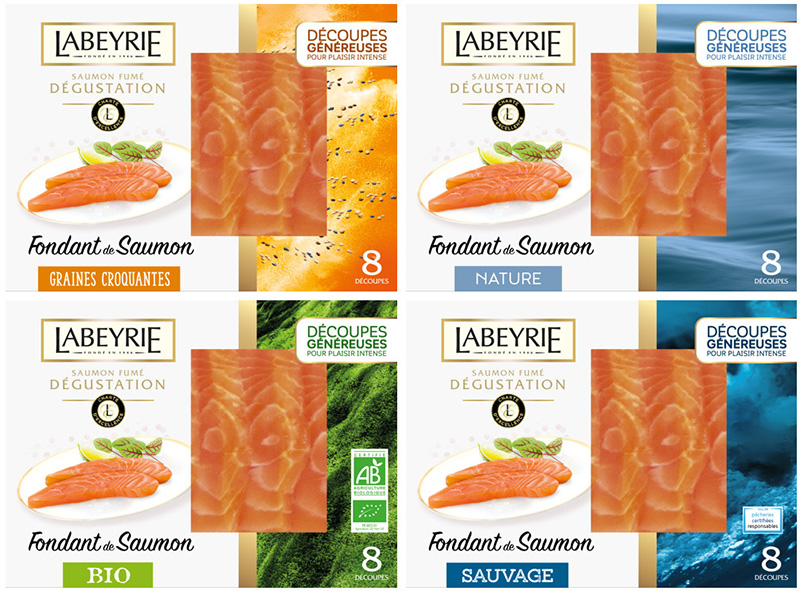 Grâce à la générosité de leur découpe et aux saveurs boisées de leur chair, ces Fondant de Saumon séduiront les amateurs de texture fondante. Et pour les plus audacieux, une nouvelle alliance aux Graines Croquantes sera l’alternative idéale pour enchanter les tables de fête ! Avec ces Fondant de Saumon, LABEYRIE renouvelle le plaisir du Saumon Fumé en faisant vivre une expérience gustative unique.
