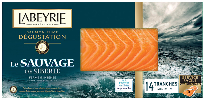 Issu des mers froides et indomptées des côtes sibériennes, le Saumon Fumé Dégustation Sauvage dévoile une chair ferme au rouge intense. C’est dans ces contrées lointaines, que LABEYRIE a fait le choix de sélectionner ses saumons pour offrir un produit d’exception qui ravira les plus fins gourmets.