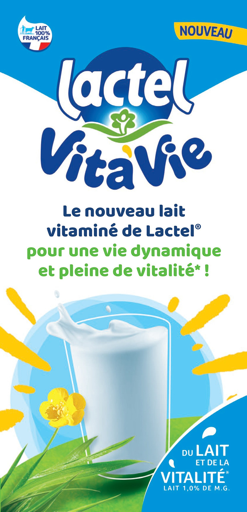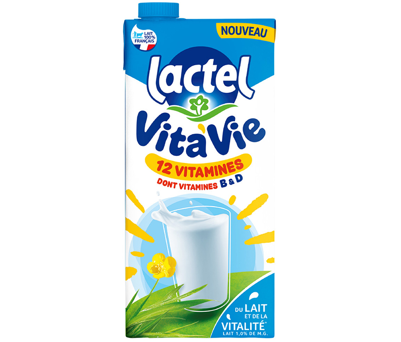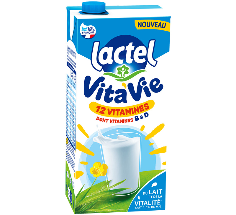 Étoffant la gamme de lait Lactel®, Vita’Vie est, à ce jour, le lait le plus complet du marché des laits UHT sur le plan nutritionnel3, avec ses 12 vitamines agissant sur la vitalité du corps et de l’esprit : les vitamines du groupe B contribuent au métabolisme énergétique ou à réduire la fatigue. Les vitamines D et K aident au maintien d’une ossature normale. Quant aux vitamines D et A, elles participent au bon fonctionnement du système immunitaire.