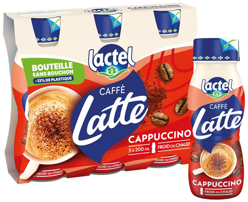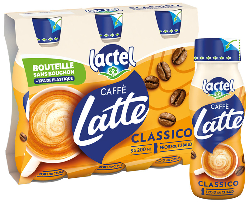 Les Caffè Latte de Lactel® seront désormais commercialisés sans bouchon ! En lieu et place, la marque propose désormais un film rétractable et pratique pour réduire l’impact environnemental de ses emballages. Proposé pour la première fois en France au rayon lait longue conservation, ce dispositif innovant cumule plusieurs avantages : protection hermétique de la bouteille avant usage, ouverture facile et, surtout, réduction de 13% du plastique utilisé. Il permet ainsi aux amateurs de Caffè Latte de Lactel® de continuer à boire à la bouteille, pour des petits déjeuners pratiques toujours savoureux et, désormais, plus écologiques !