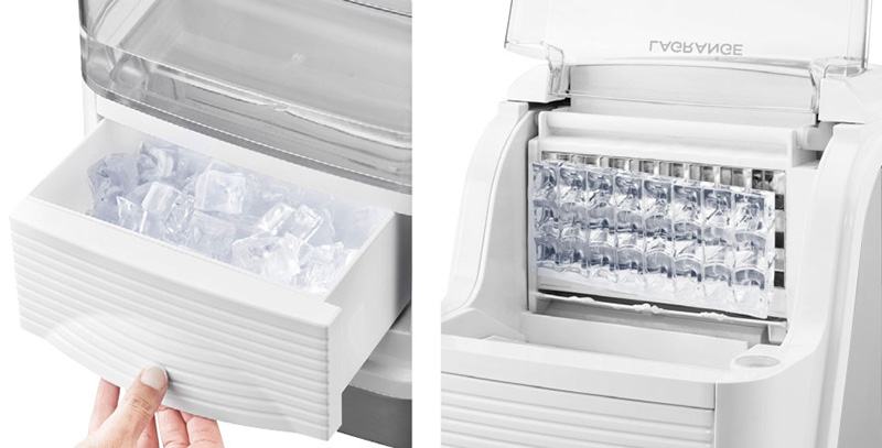 Rapide, le Glaçons Transparence® LAGRANGE trouvera aisément sa place chez les plus pressés puisqu’il est capable de produire plus de 15Kg de glaçons en 24h, soit près d’un glaçon à la minute ! Compact et performant, il est équipé d’une cuve pouvant accueillir jusqu’à 600g de glaçons, idéale pour les plus grandes tablées. Grâce à son tableau de bord intuitif, il suffit de quelques secondes pour remplir le réservoir d’eau, choisir le calibre du glaçon : le tour est joué.