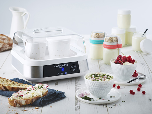 Déclinée dans une version yaourtière-fromagère, elle permet de réaliser de délicieux fromages blancs et faisselles pour un petit-déjeuner complet, mais aussi des fromages frais pour un apéritif créatif et gourmand.