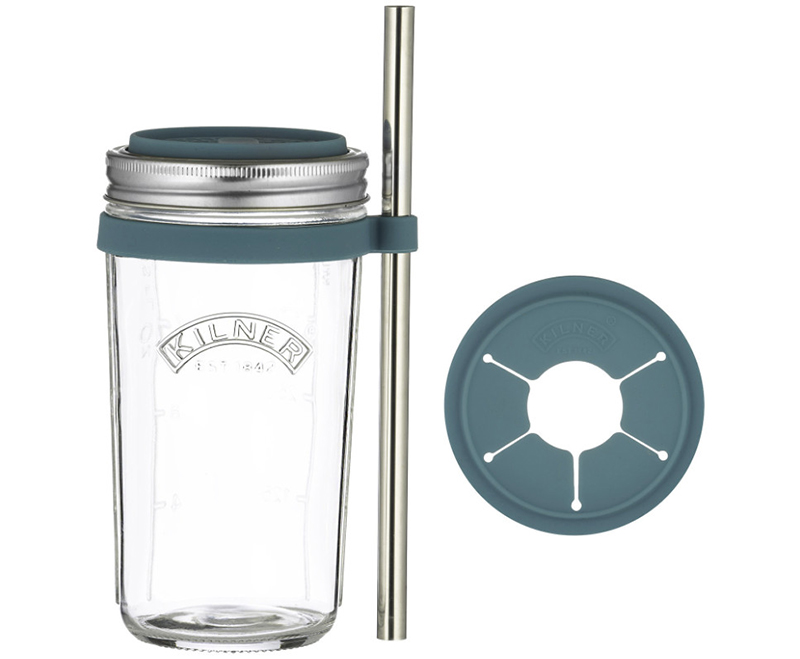 Le kit de préparation de smoothies Kilner permet de créer très facilement des boissons froides fruitées « faites maison ». Avec sa large ouverture, il est possible de mixer directement les ingrédients dans le bocal en verre très résistant. La protection en silicone évite les éclaboussures pendant le mixage. Une fois la préparation terminée, il faut placer le couvercle en silicone et l’anneau de protection hermétique sur le joli contenant pour un transport et une dégustation en toute sécurité. Faire le plein de vitamines n’a jamais été aussi simple !