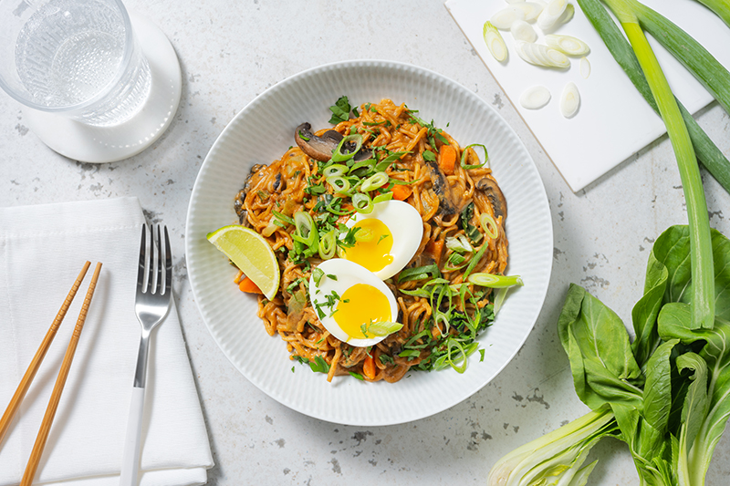 Le laksa est un plat du Sud-Est de l’Asie composé de nouilles et principalement consommé en Malaisie, en Indonésie et à Singapour. Vous connaissez certainement notre version aux crevettes ? Et bien testez donc cette variante veggie agrémentée d’un œuf. En bonus, cette recette est One Pot, ce qui signifie que vous cuisez tous les éléments dans une seule casserole !