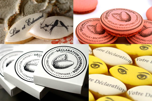 Créez la surprise avec Déclaration Gourmande ! Calissons, financiers, macarons et biscuits s'apprêtent de vos messages & illustrations pour un cadeau inédit